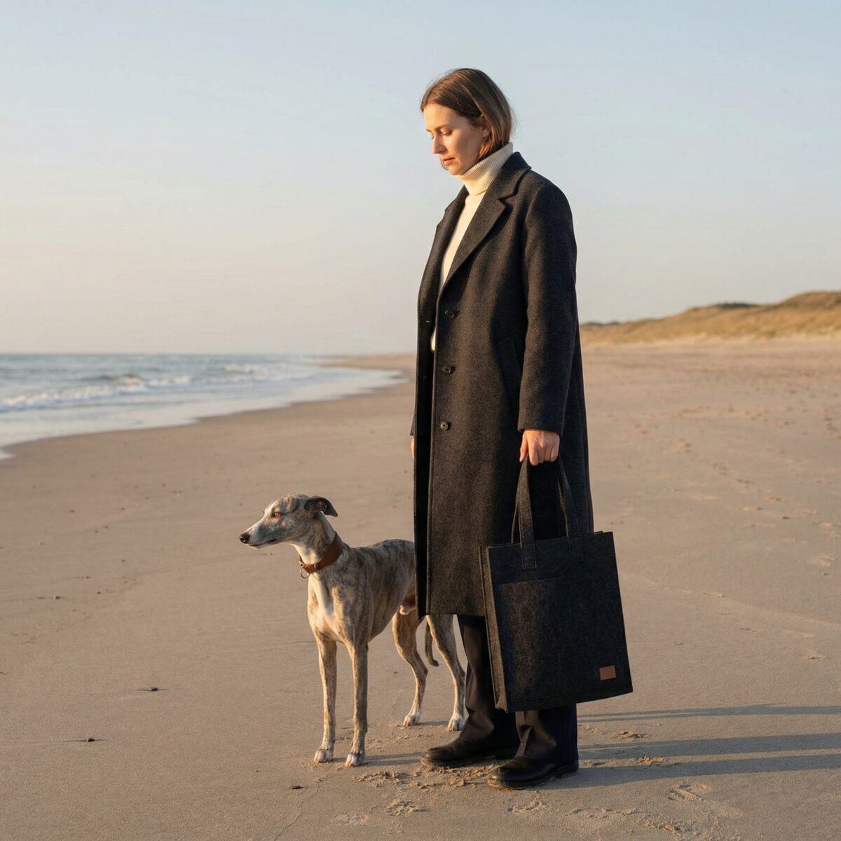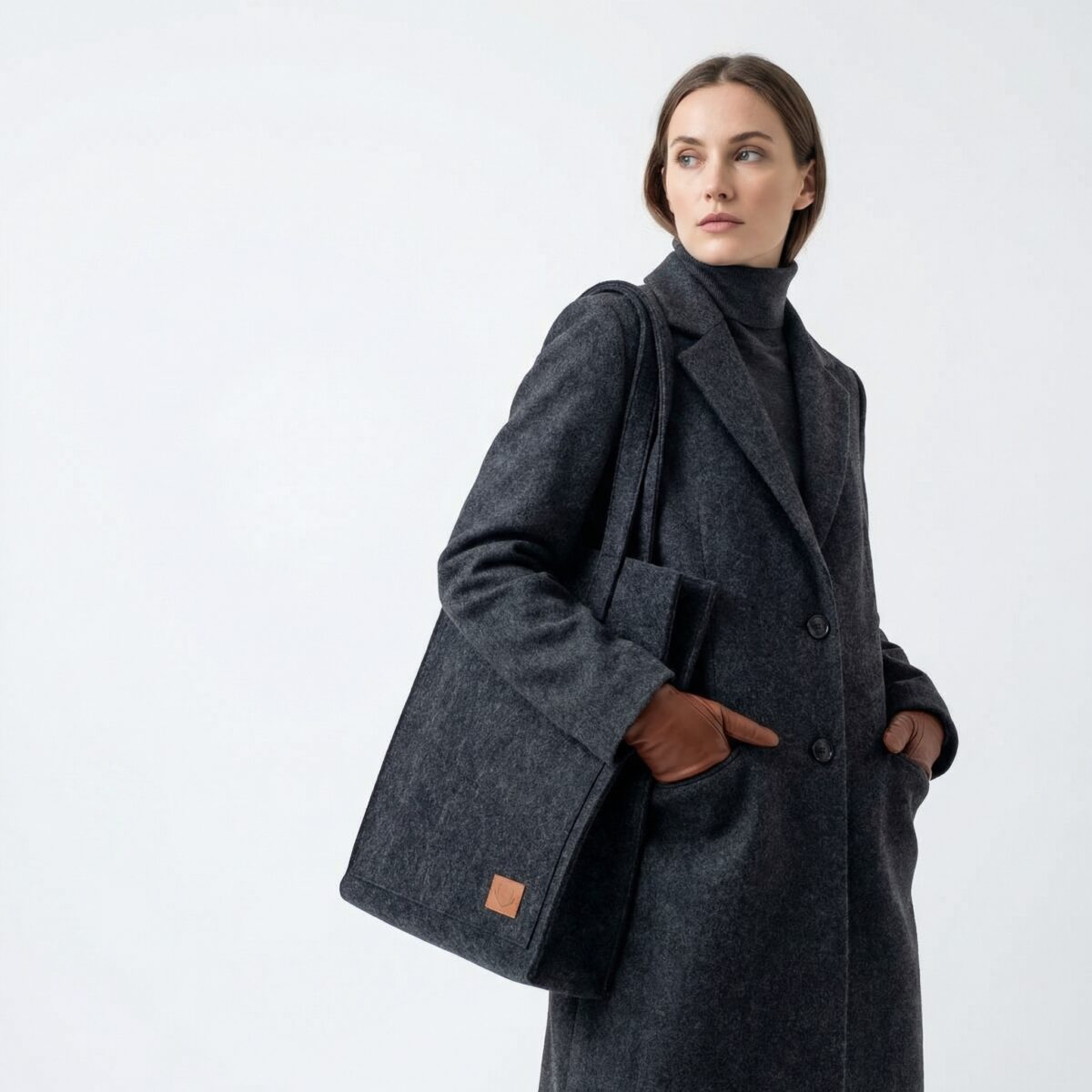 HOF for those who appreciate classical design and up-cycled materials. timeless design with a clear Scandinavian heritage makes – hof –  a perfect for the ones with the fast pace of life. offering plenty of space for all the things one might need while remaining versatile to work with any outfit. its durable felt and handmade production make this tote bag your everyday companion for a long time. the workhorse of a wardrobe. the very favorite one.