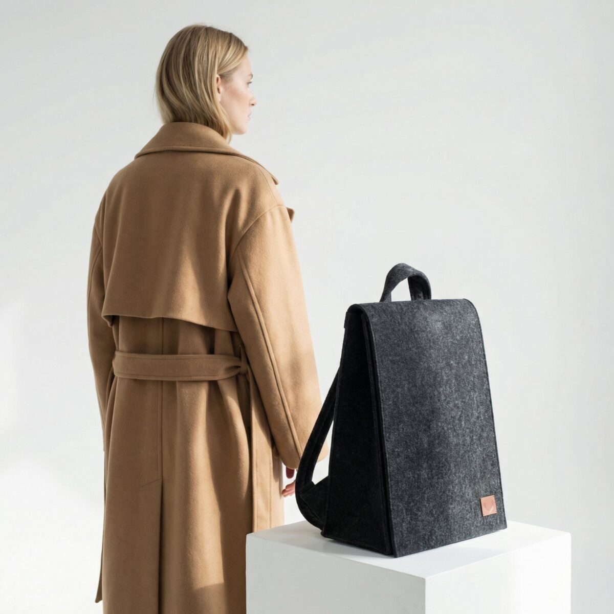 LUND is one of our most iconic products of all time. solid design with minimalist characteristics. its sleek geometry and rough material combination create a modern personalized look. the practical yet stylish unisex backpack is lightweight, keeps well its shape, and is spacious enough to fit a laptop, documents, and all essentials. available in various sizes. its minimal design remains versatile to work with any outfit. the bag has a spare inner pocket for the laptop and adjustable webbing straps. front flap fastens with magnetic snaps. durable felt and handmade production make this bag your everyday companion for a long time.